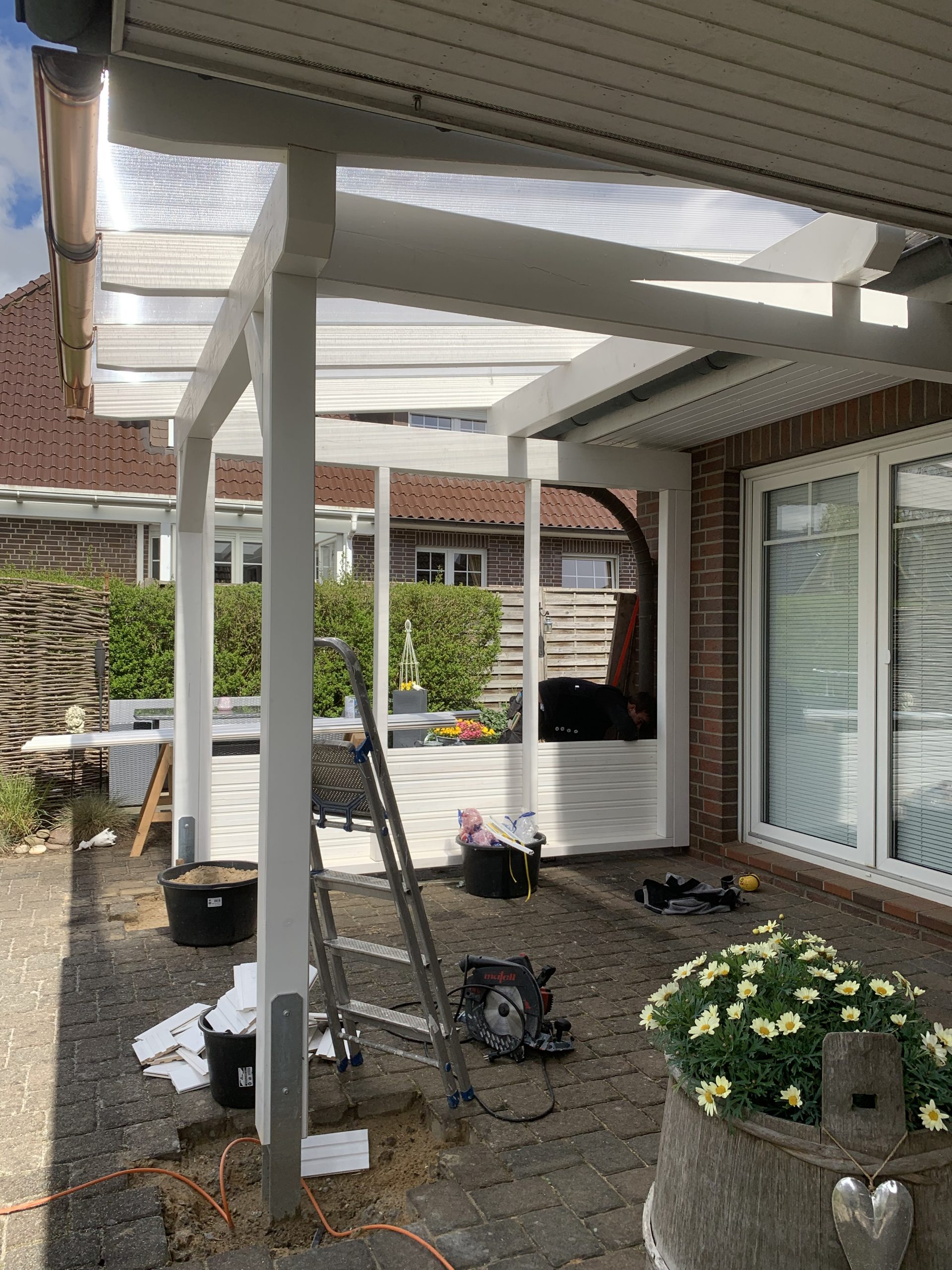 Bei diesem Projekt entstand eine helle und zugleich wettergeschützte Terrassenüberdachung, ideal für jede Jahreszeit.